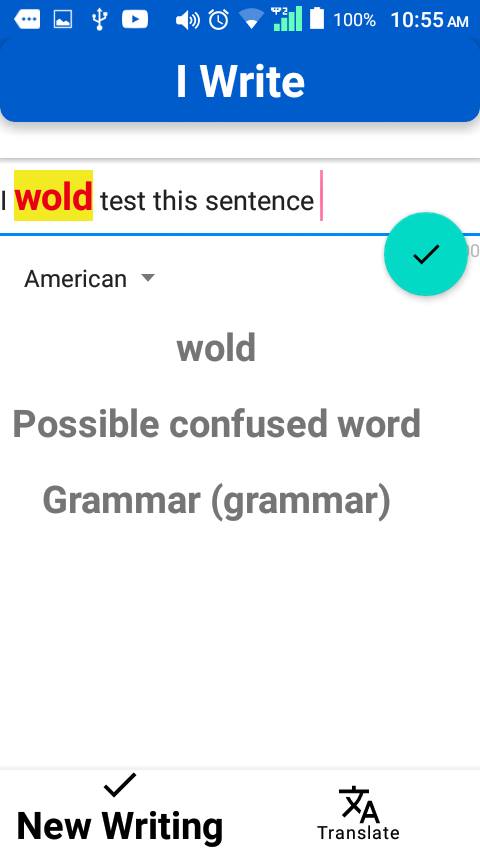 iWrightGo app In four sections: iWriting Class: a virtual platform where the teacher and students can share any sort of files or links to extend their writing classes outside the formal classroom. iSentence Writing: a further source of understanding that encompasses all the lessons associated with sentence writing in English. Those are related to grammar, capitalization, punctuation, style, spelling of words (Orthography) and vocabulary iWrite page: here is a space for writing and self editing. It is worth mentioning that, unlike the common checkers, this page SOLELY hints the errors in writing without correcting them. This is an endeavor to keep the students' challenge to identify the type of errors she/he makes and edit them by themselves. iWordfinder: a simplified wordfinder dictionary that helps the student to check out the meaning and the spelling of words. According to, this may aid in widening students knowledge of vocabulary and the proper way of using it.